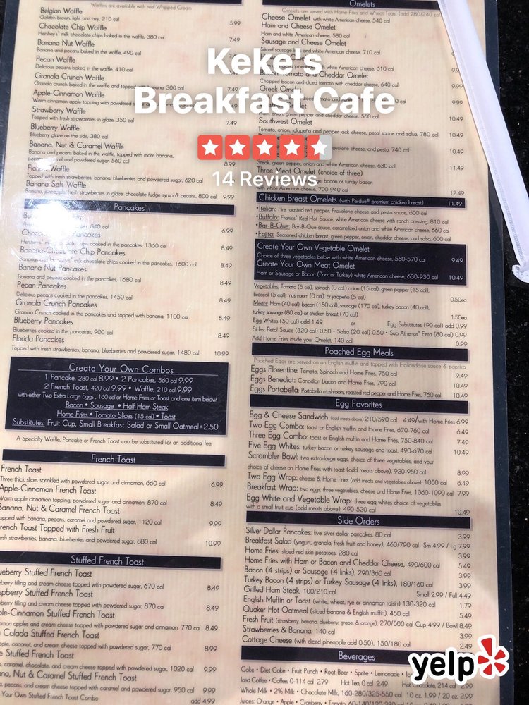 Keke's Breakfast Cafe in Boca Raton offers a wide range of breakfast and brunch options in a casual setting, perfect for groups and families. The menu features customizable combos, fluffy pancakes, and delicious waffles with various toppings. Customer reviews rave about the generous portions, friendly service, and overall excellent dining experience. You can choose from vegan and vegetarian options, and even enjoy happy hour specials and alcohol. The ambiance is perfect for a relaxing breakfast vibe, making it a popular spot in South Florida. Whether you're looking for a classic breakfast or something more modern, Keke's Breakfast Cafe has something for everyone. Make sure to stop by for a satisfying and delicious meal that won't disappoint.